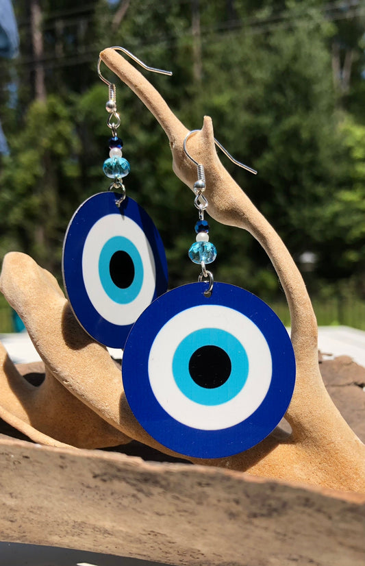 Evil eye round Dangle Earrings with glass beads. A Unique gift idea