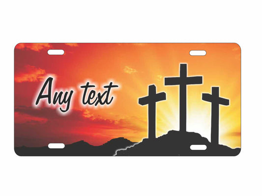 Golgotha Three Crosses on The Mountain personalized novelty license plate 3 crosses on the hill christian vanity front plate