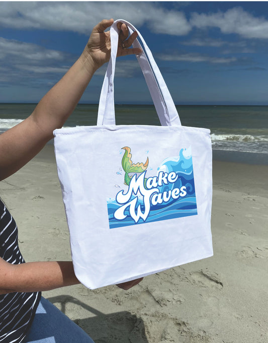 Make waves mermaid tail Heavy weight cotton canvas large zippered tote bag
