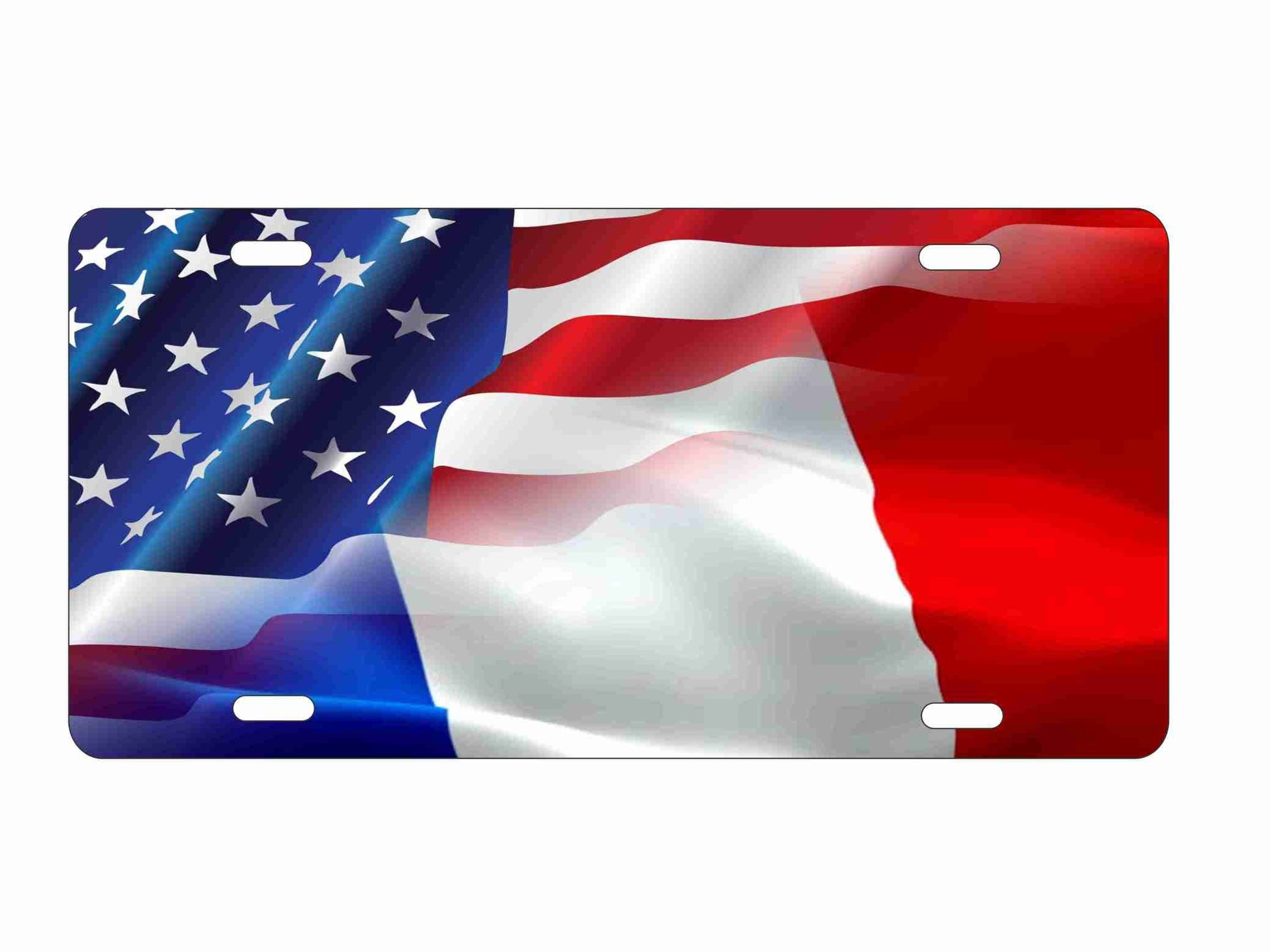 American and French flag personalized custom novelty license plate decorative aluminum vanity front plate
