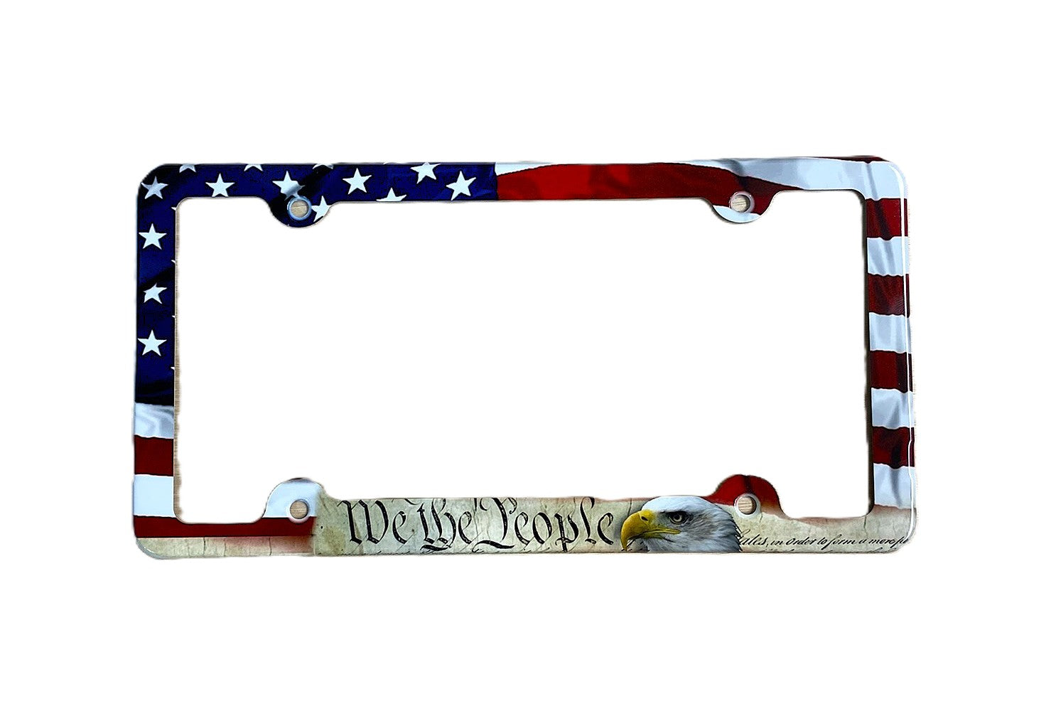 American Flag License Plate Frame, We The People with Eagle Design, 12 x 6 inches, Patriotic Car Accessory