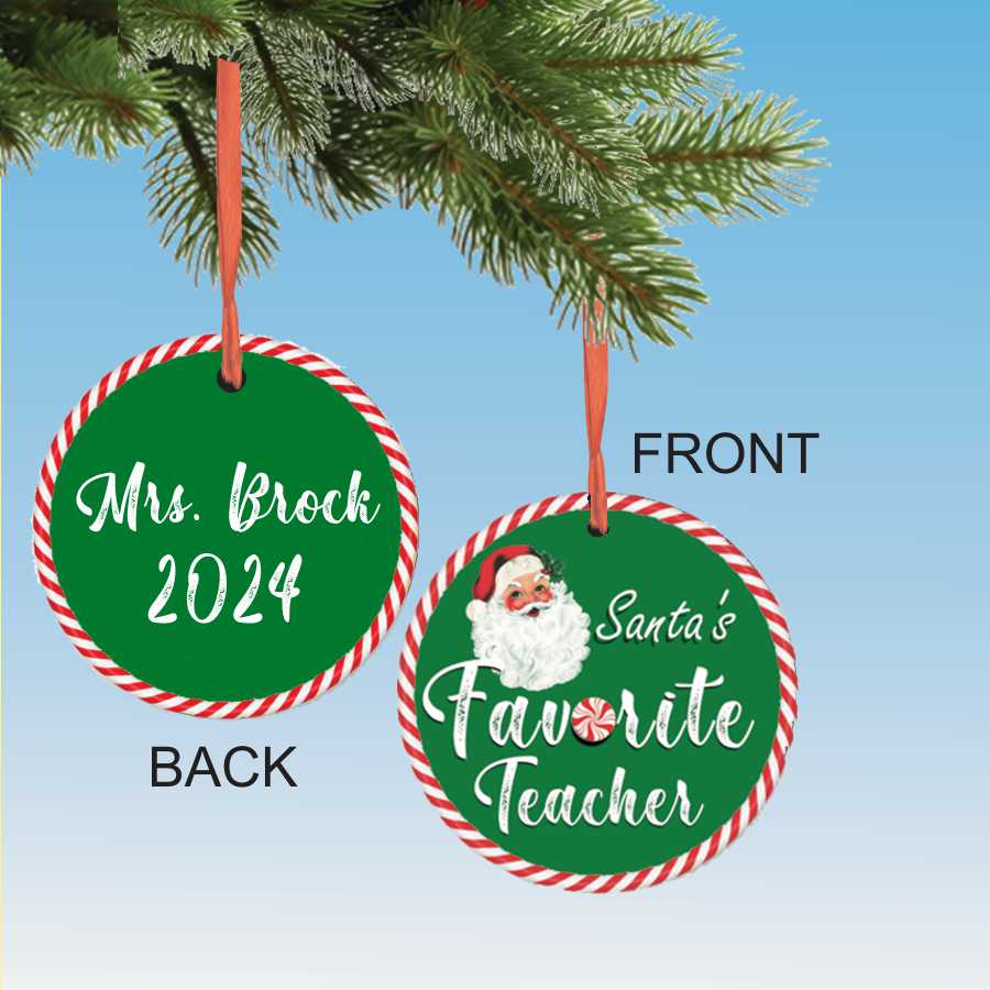 Celebrate your favorite teacher this holiday season with our personalized "Santa's favorite teacher" ornament. Crafted with care and customized with their name, this ornament makes for a unique and thoughtful gift. Show your appreciation in a special way.