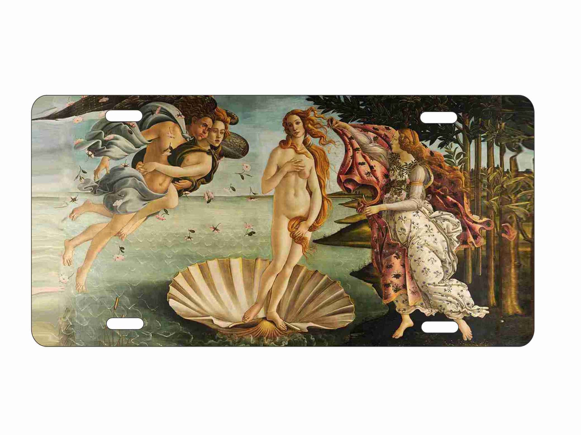 Enhance your vehicle with a touch of artistry through our Birth of Venus aluminum license plate. Made with high-quality materials, this decorative vanity front plate displays the famous artwork in a sleek and durable design. Elevate your car's aesthetic and show off your passion for art on the road.