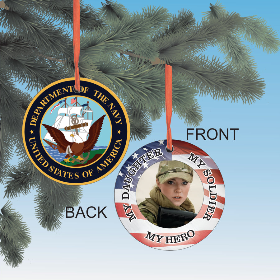 My hero Soldier Personalized military first responder Ornament with your photo a great gift for Christmas or Hanukkah