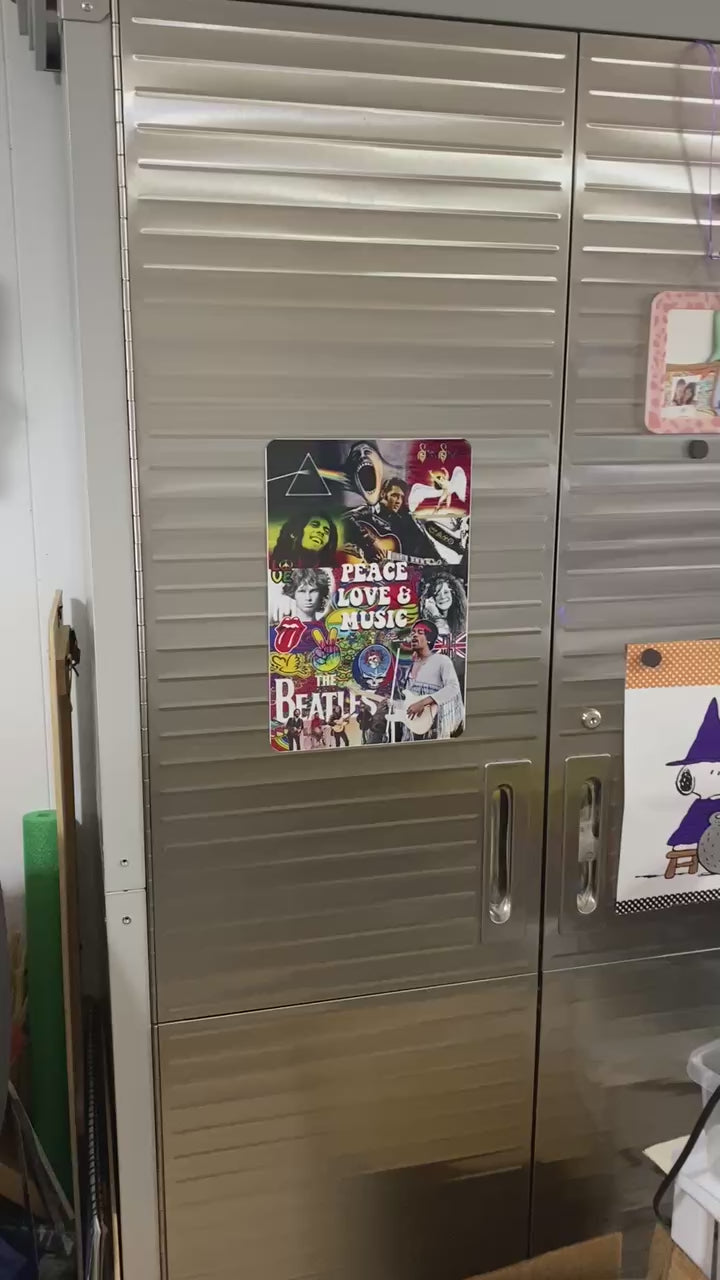 Decorate your space with the legendary symbols of peace, love, and music with our decorative aluminum sign. Crafted with a love for music and an appreciation for rock legends, this sign will add a touch of nostalgia to your home or music room. Made with durable aluminum for long-lasting display.