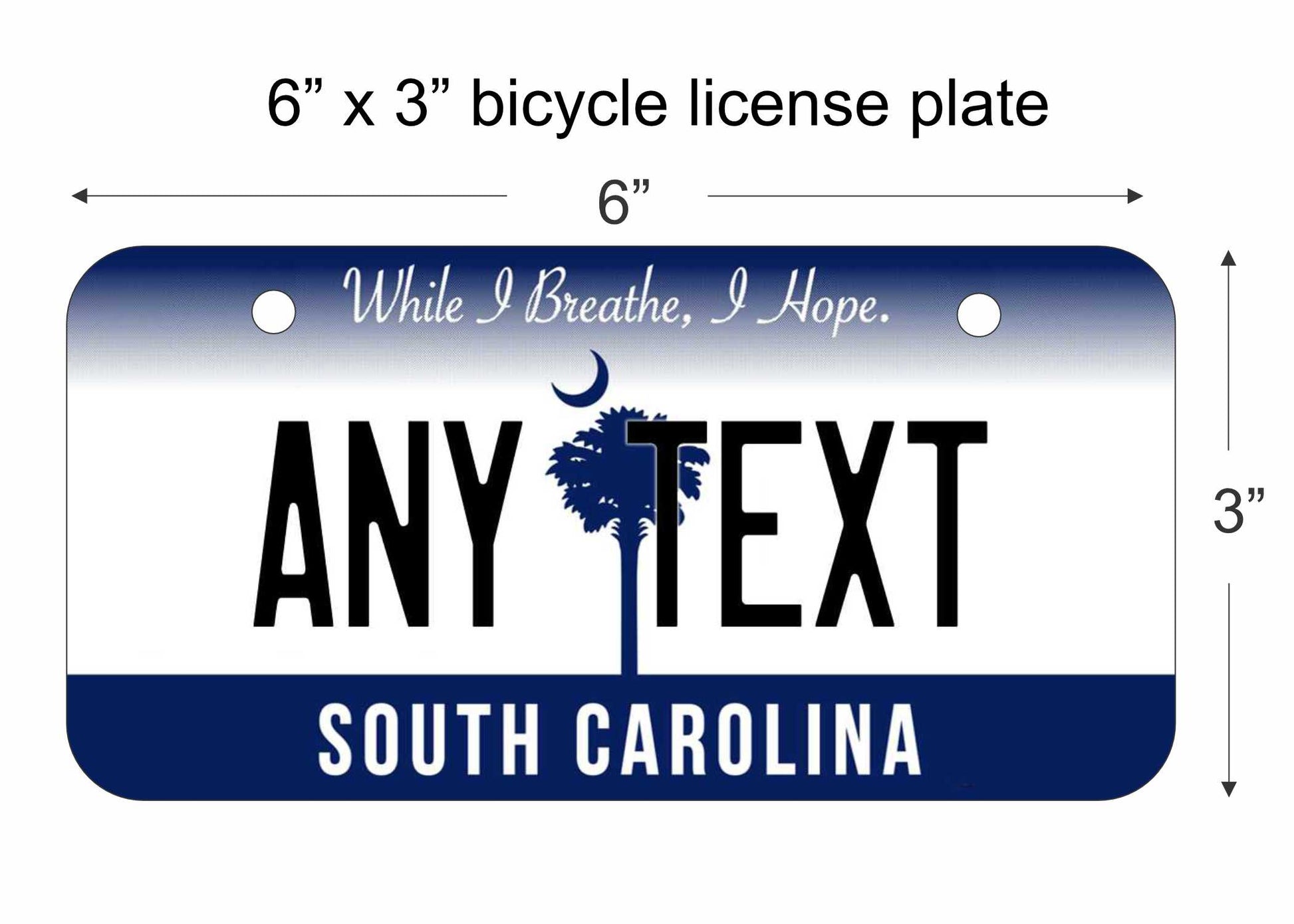 This South Carolina replica bicycle license plate is made of high-quality aluminum and can be personalized with any text. Perfect for decorating your bike or adding a touch of customization to your home. Show off your love for South Carolina with this custom made decorative sign.