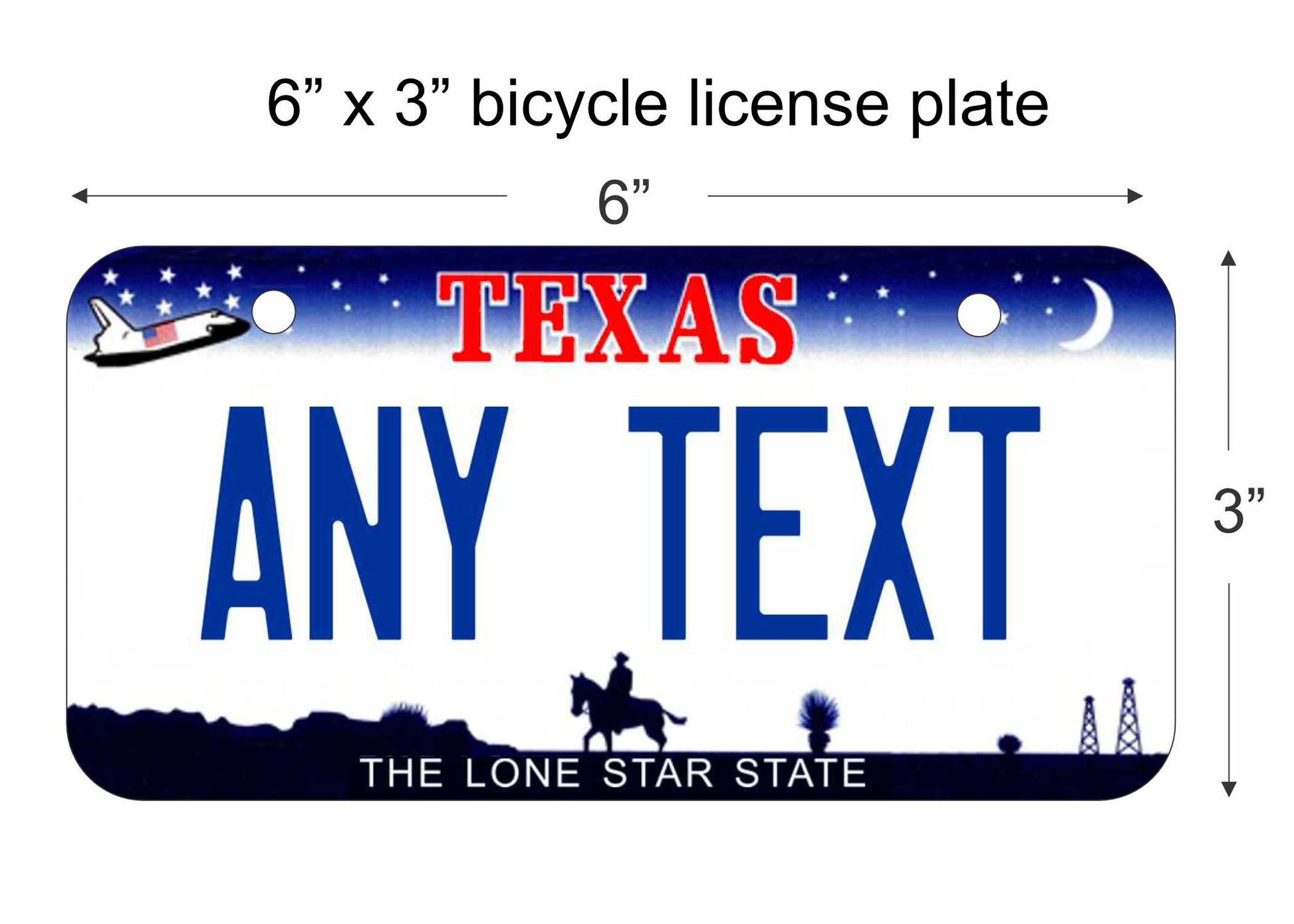 Texas replica bicycle license plate personalized with any text custom made decorative aluminum sign