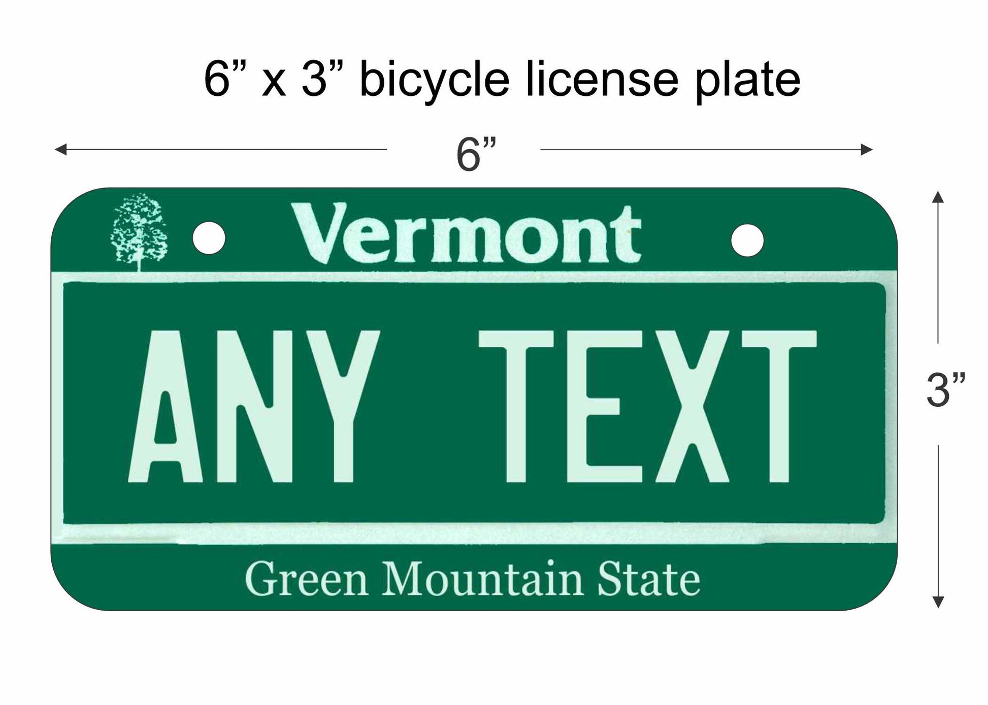Customize your bike with our Vermont replica bicycle license plate. Made of high-quality aluminum, this personalized plate adds a unique touch to your ride. Choose any text to make it your own, perfect for showcasing your love for Vermont or creating a one-of-a-kind gift for a fellow cyclist.