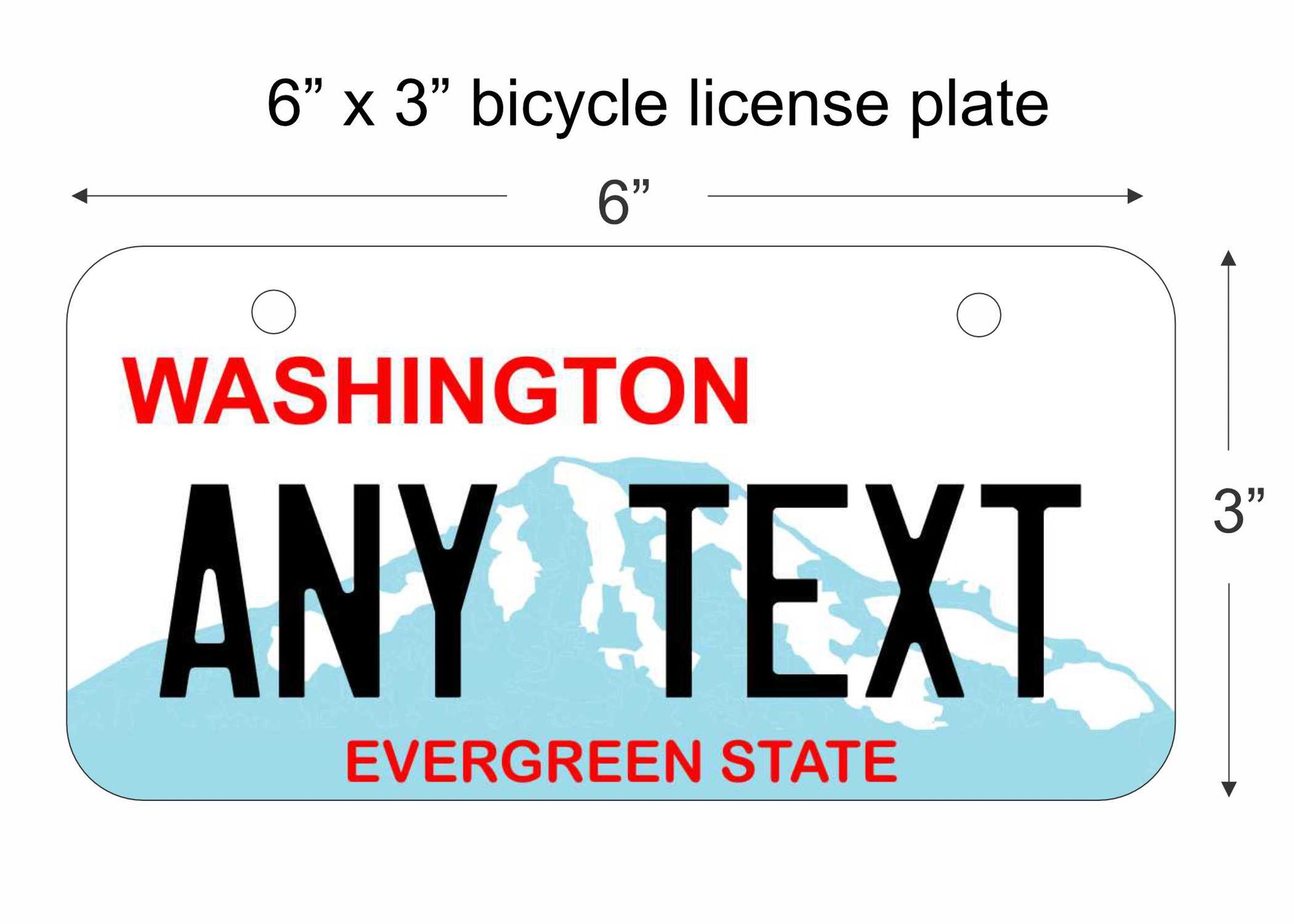 Washington state replica bicycle license plate personalized with any text custom made decorative aluminum sign