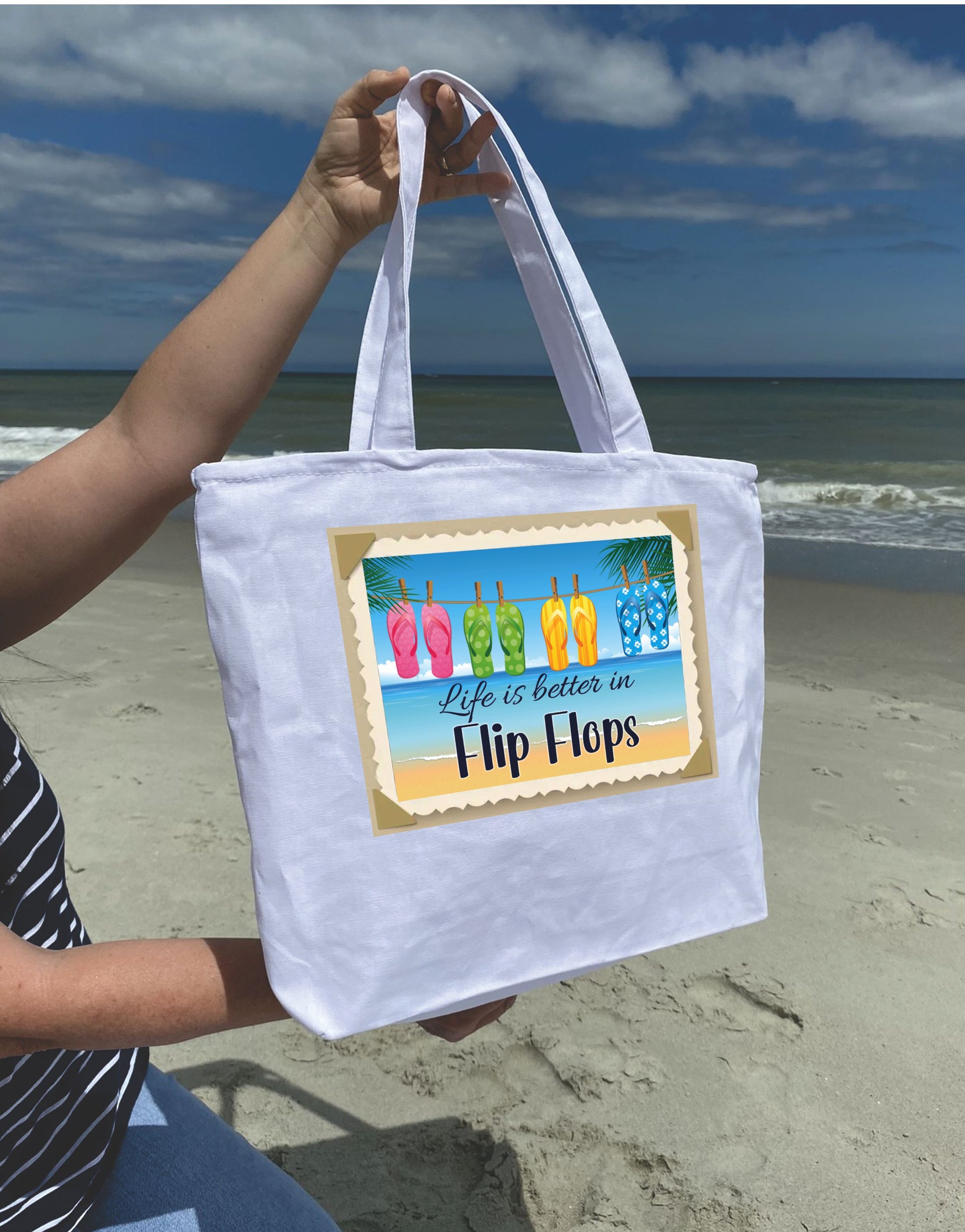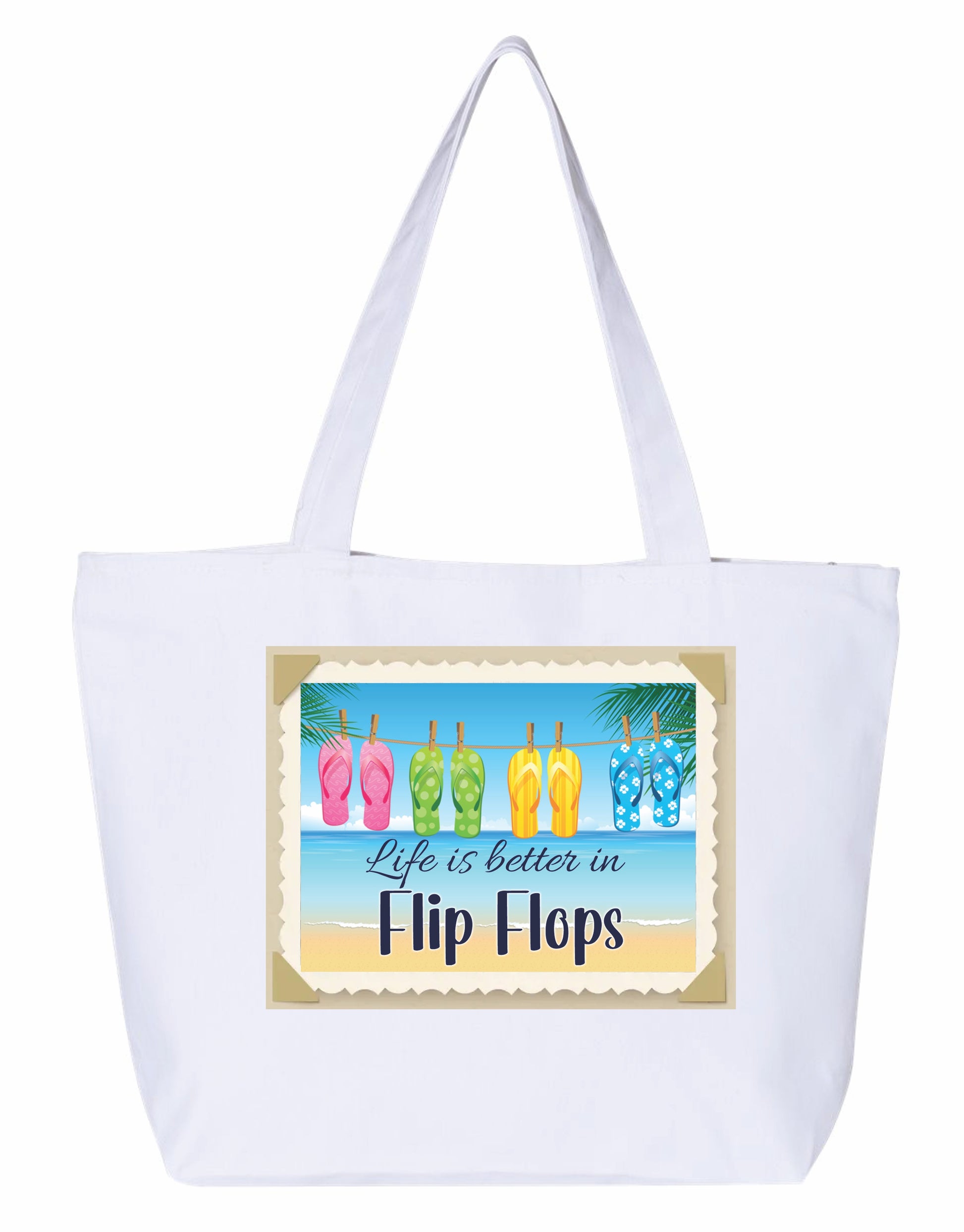 Life is better in flip flops Heavy weight cotton canvas large zippered tote bag