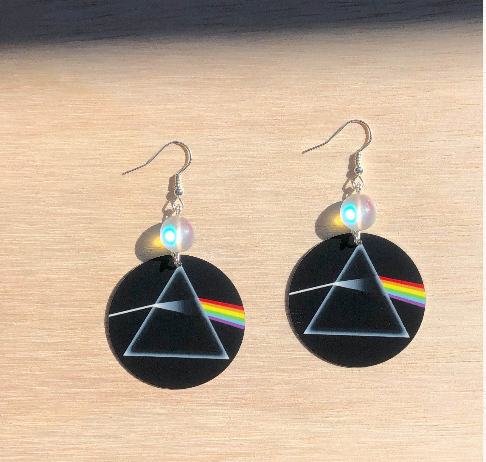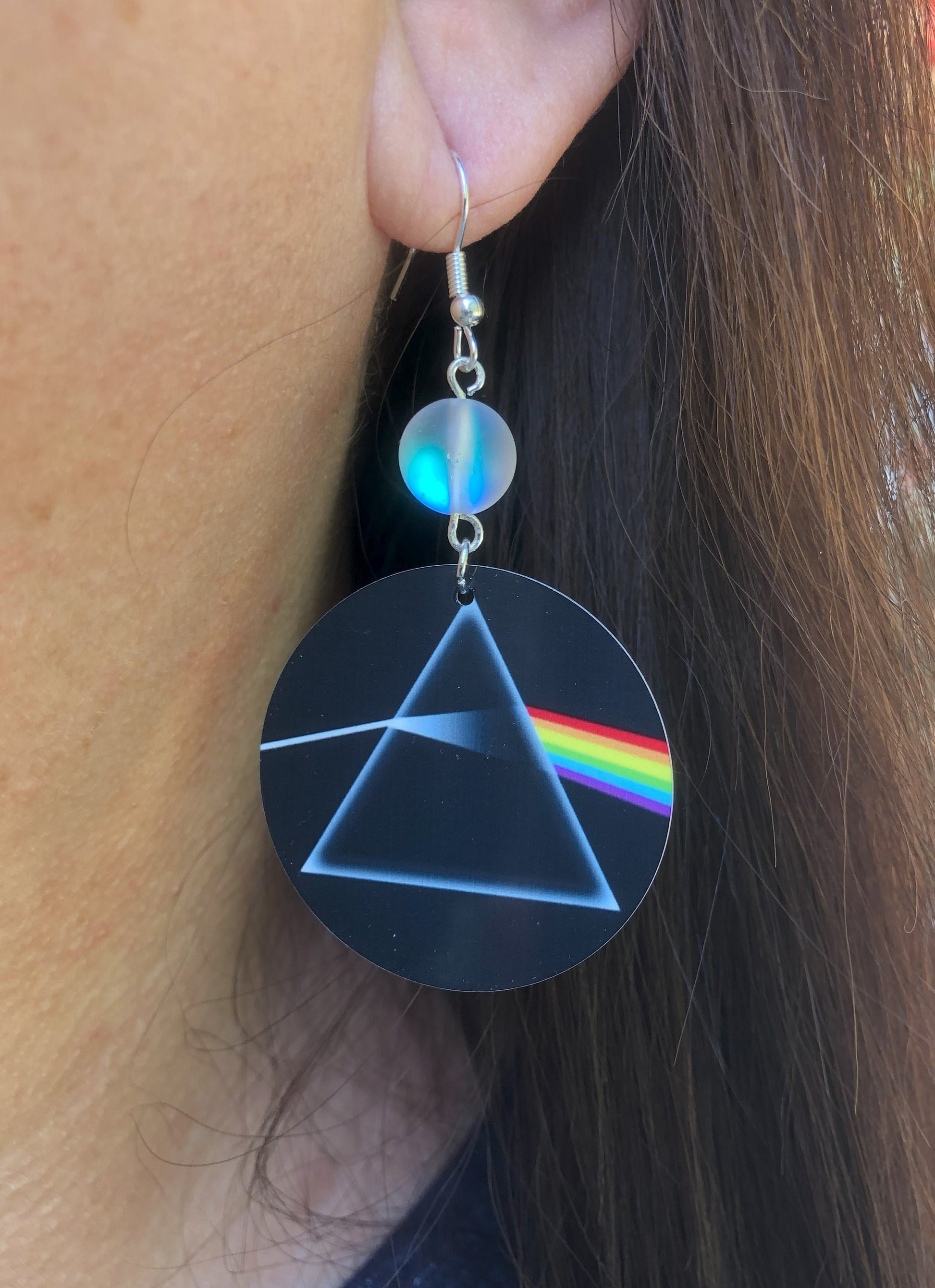 Rainbow prism round Dangle Earrings with glass beads. A Unique gift idea
