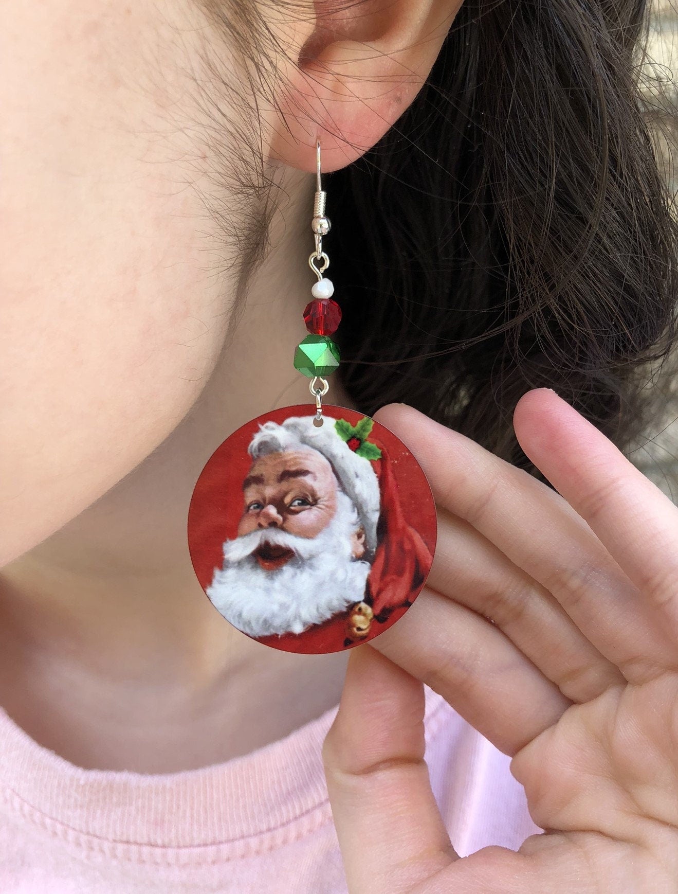 Santa Claus head round Dangle Earrings with glass beads. A Unique Christmas gift idea