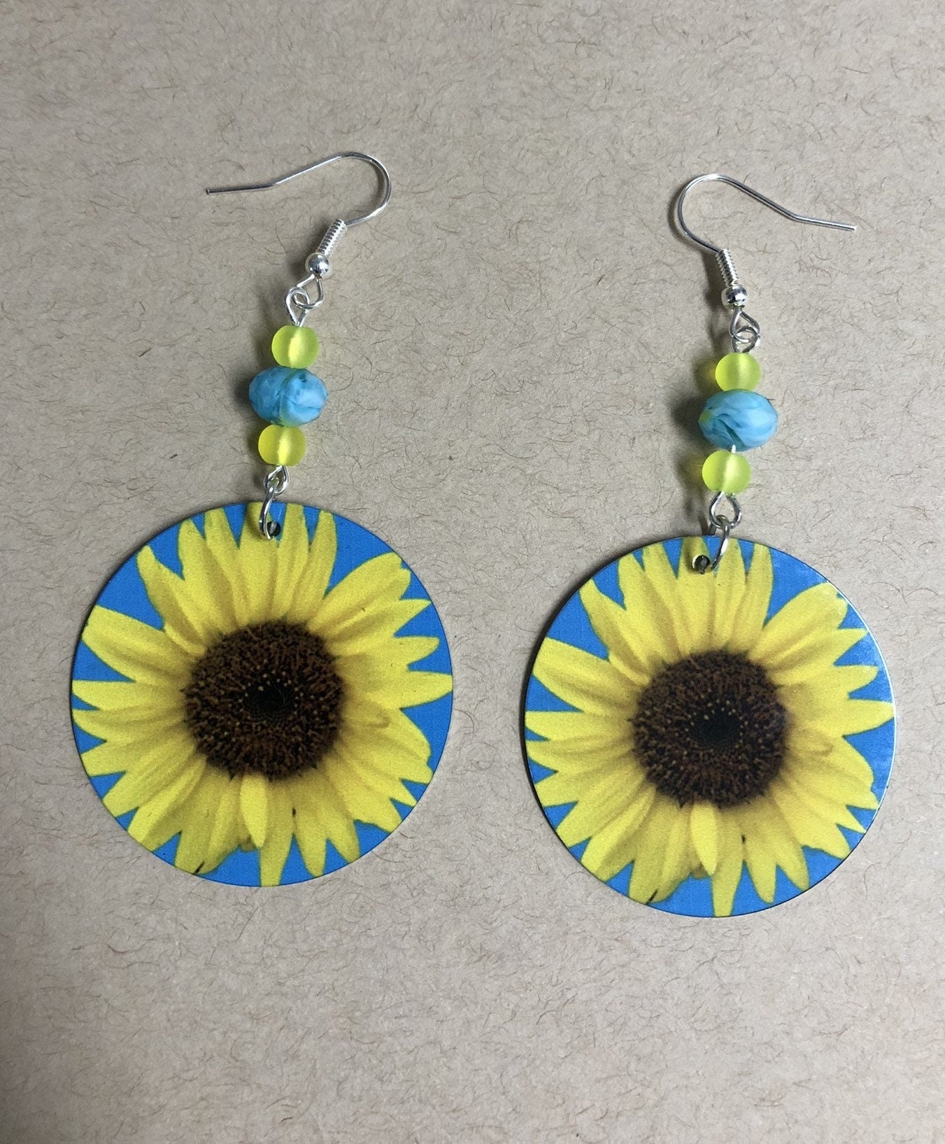 These dye sublimation earrings are printed on 1.5” diameter round with a very thin profile and lightweight aluminum. Printed on both sides.