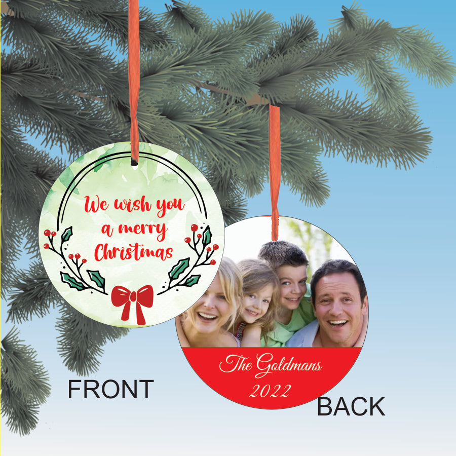 Celebrate the holidays with a personalized touch! Our "We Wish You a Merry Christmas" ornament and car charm allows you to add your own photo for a unique and festive decoration. Spread joy and nostalgia with this special ornament and charm combo.
