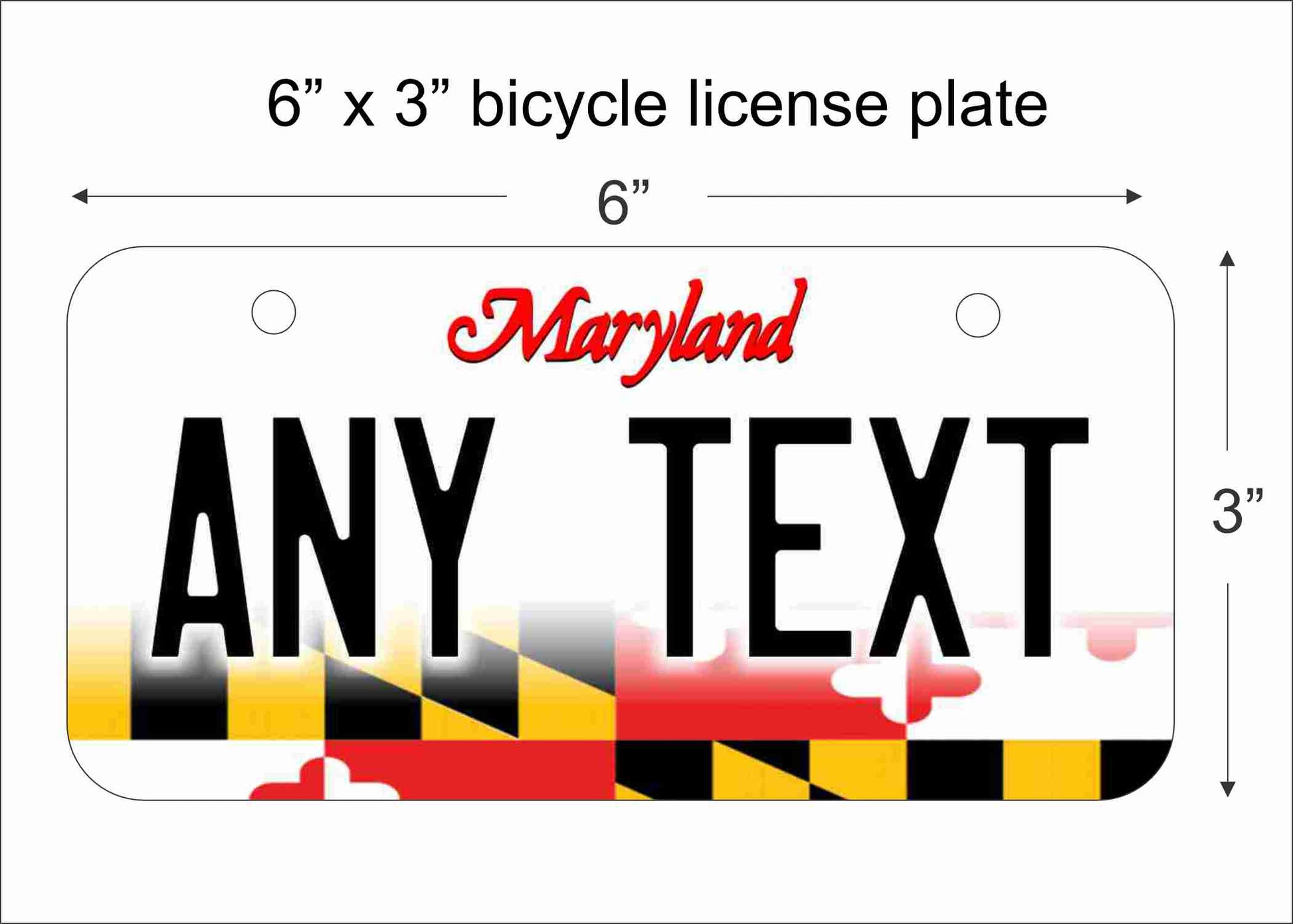 Maryland state replica bicycle license plate personalized with any text custom made decorative aluminum sign